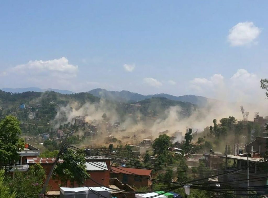 गाडिमा गियर चेन्ज गर्दाको जसरी थोरै स्लो भएर भूकम्पले छैटौं सातौ सेकेण्ड तिरबाट पिकअप लिन थाल्यो । अव त घटटटटट गरेर बेस्सरी हल्लिन थाल्यो । संगै खाना खाइरहेका साथिलाई आफुसंगै टेवल मुनी ओत लाग्न बोलाउदै गर्दा सडक पारीको घर भत्किन थाल्यो । गल्र्याम गुर्लुम आवाज हरु थपिन थाले । बचाउ बचाउ भनेका चित्कार थपिन थाले ।